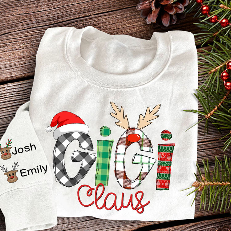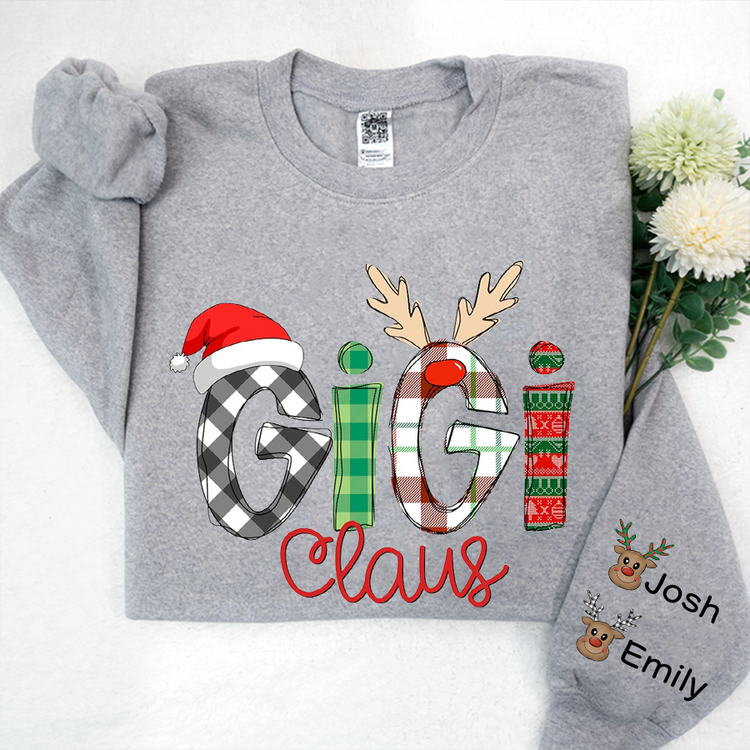 Personalized Gigi Claus Shirt, Gigi Claus Shirt, Gigi Claus Shirts for Christmas, Gigi Claus with Grandkids Name Sweatshirt, Xmas Gigi Sweatshirt