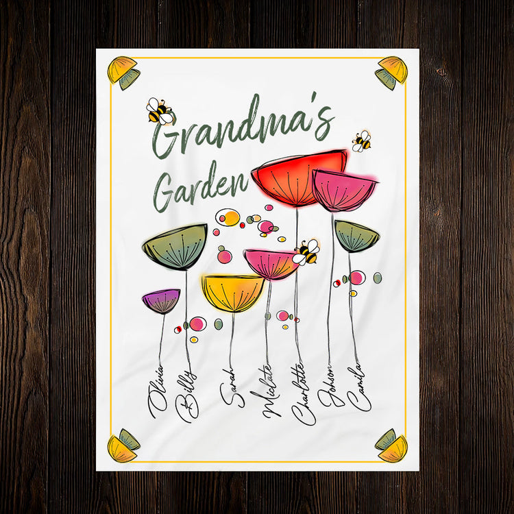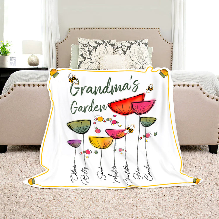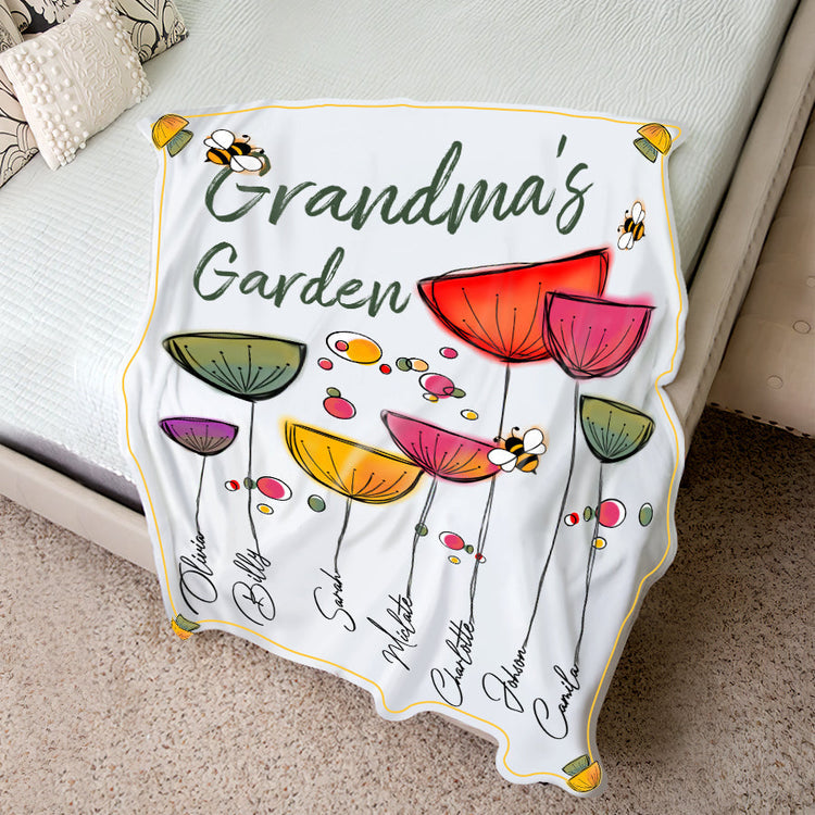 Personalized Grandma Fleece Blanket, Grandma's Garden Blanket, Custom Names Blanket