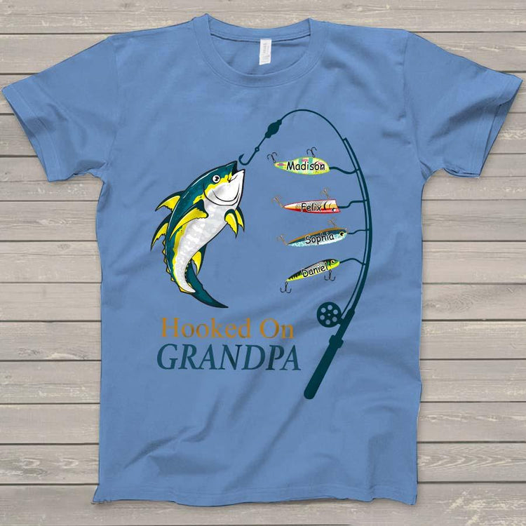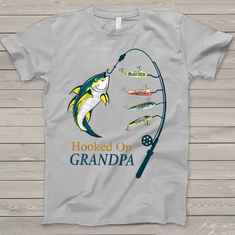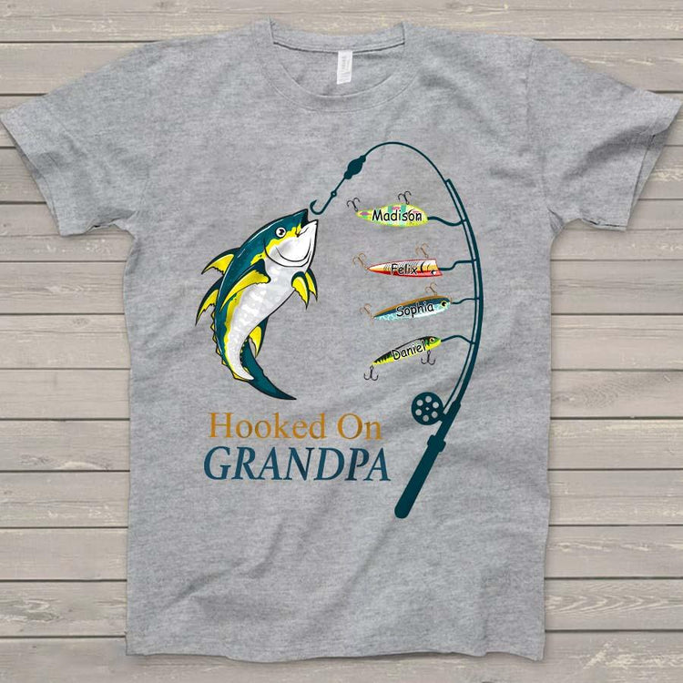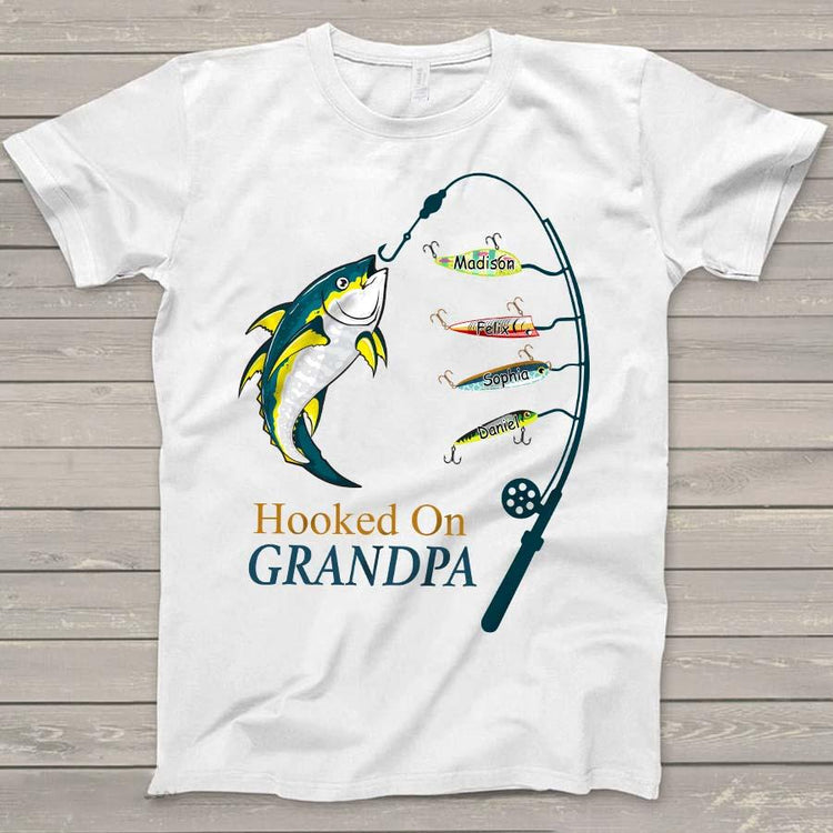Personalized Hooked On Grandpa Shirt, Fishing Dad Shirt, Father's Day Shirt