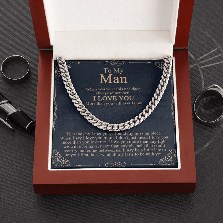 Personalized Message Card, Cuban Link Chain Necklace, To My Man When You Wear Necklace Never Forget That I Love You
