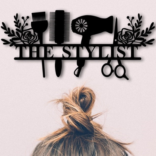 Personalized Metal Hair Stylist Sign - Custom Metal Sign for Salon Hair Stylist Gift Scissors Clippers Comb Sign LX043E