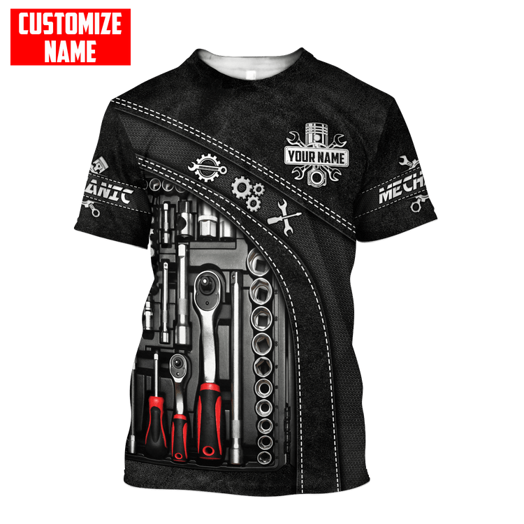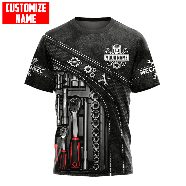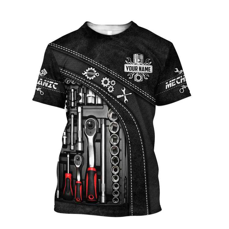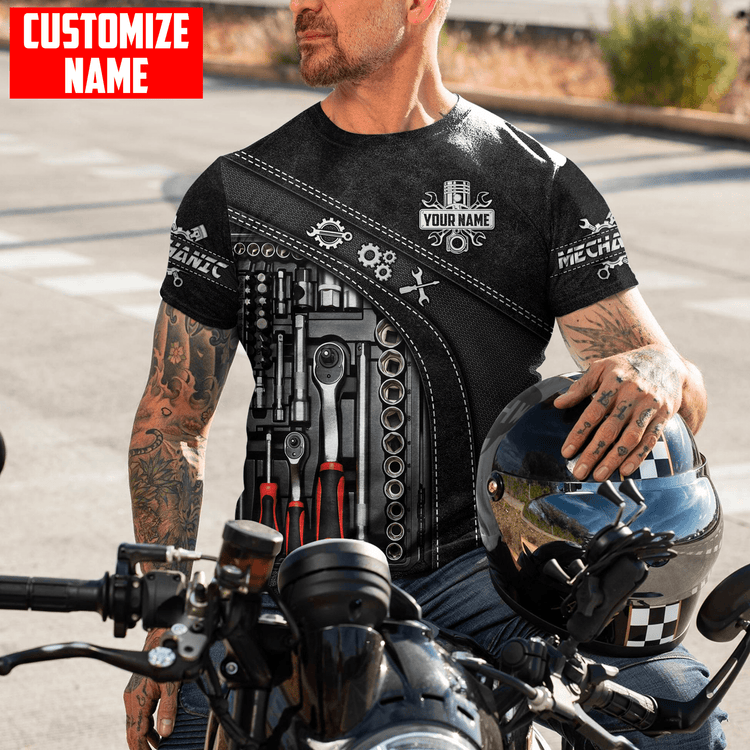 Personalized Name Mechanic Unisex Shirts Leather Pattern, Mechanical Shirts, Gift For Mechanician