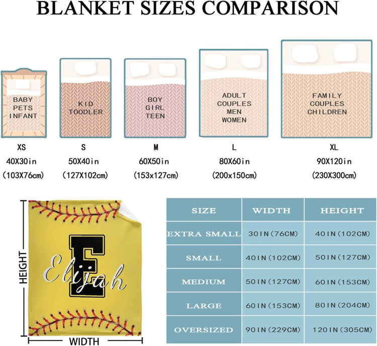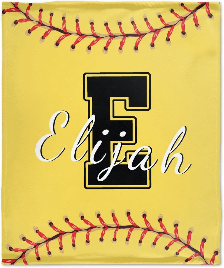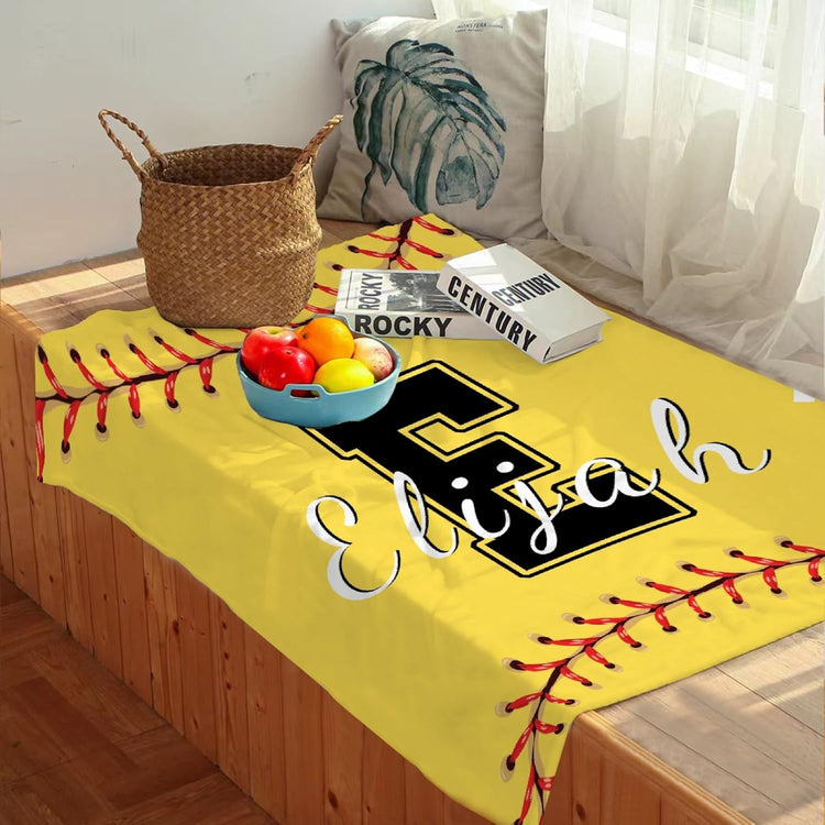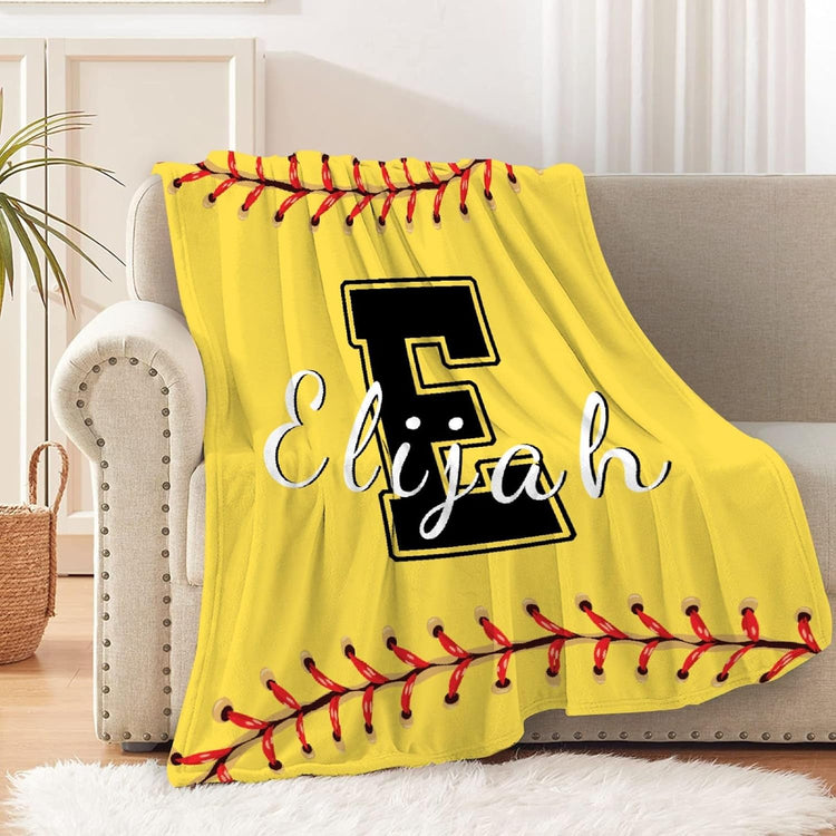 Personalized Name Softball Blanket, Softball Gift for Boy Men Girl Teens Custom Name Softball Throw Blanket Sport Ball Game 50"x60" for Teens Warm Cozy Soft Plush Lightweight Bedding Sofa Room