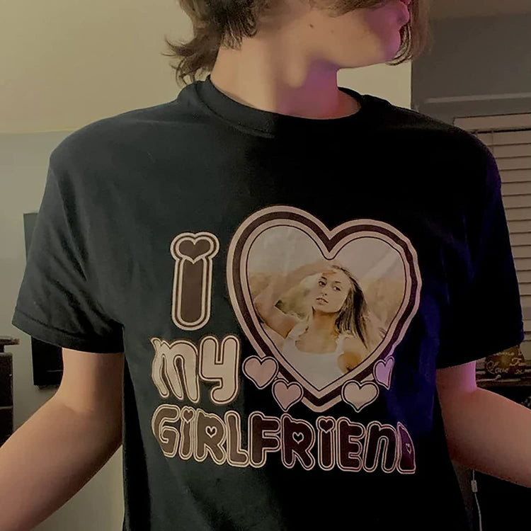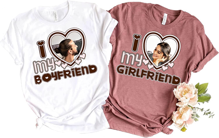 Personalized Photo Shirt I Love My Girlfriend Boyfriend Shirt, My Girlfriend is Watching You T-Shirt Custom Photo