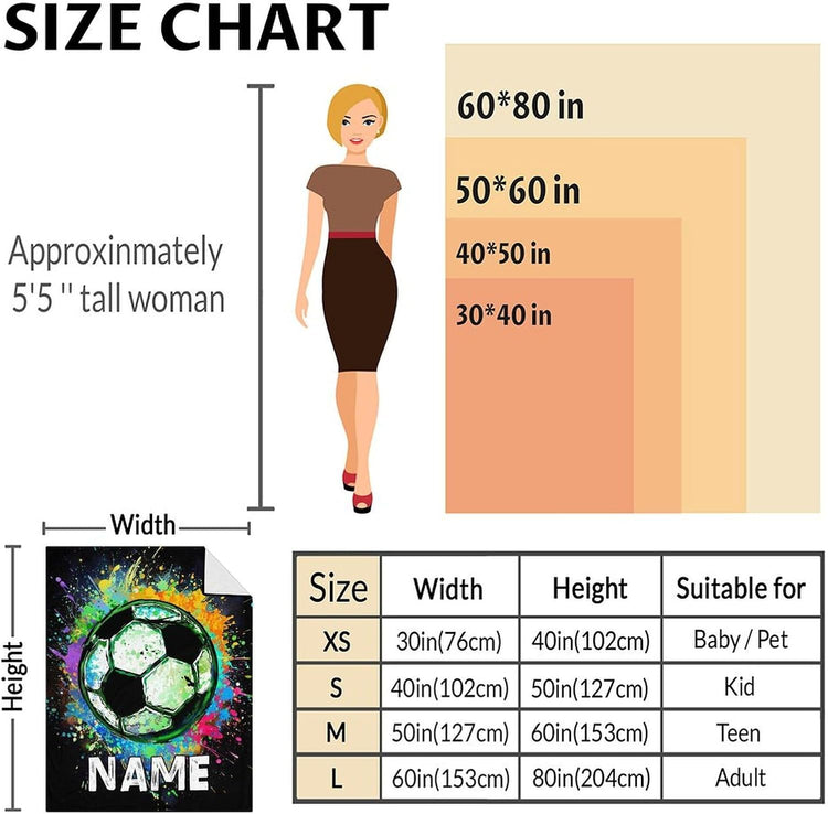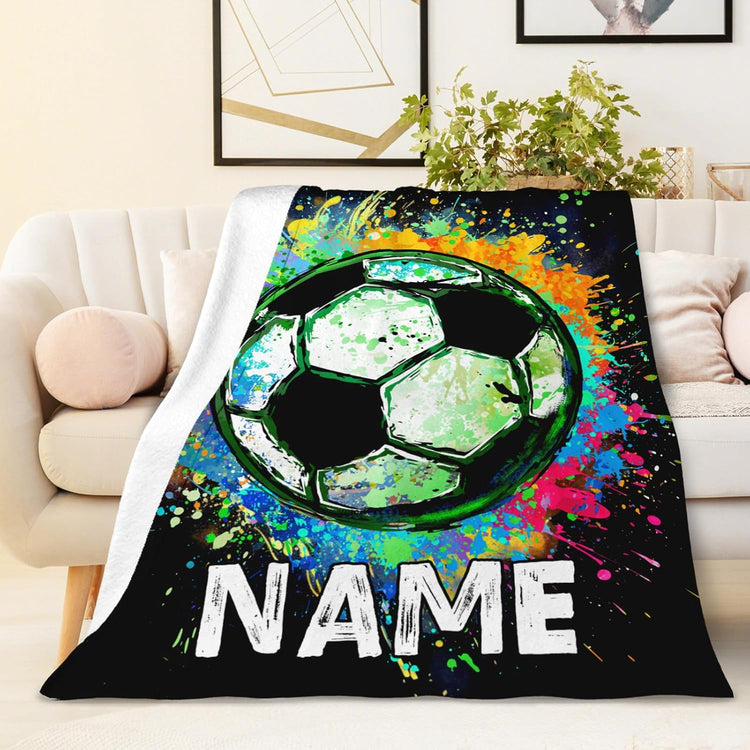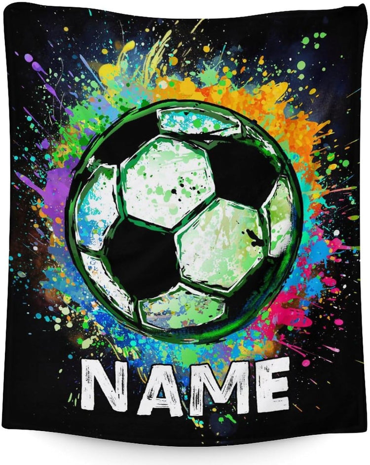 Personalized Soccer Blankets and Throws - Custom Sport Throw Blanket for Boys Kids Teens - Black Soccer Gifts with Name for Soccer Lovers