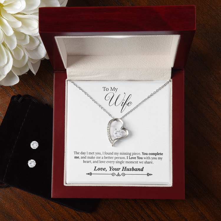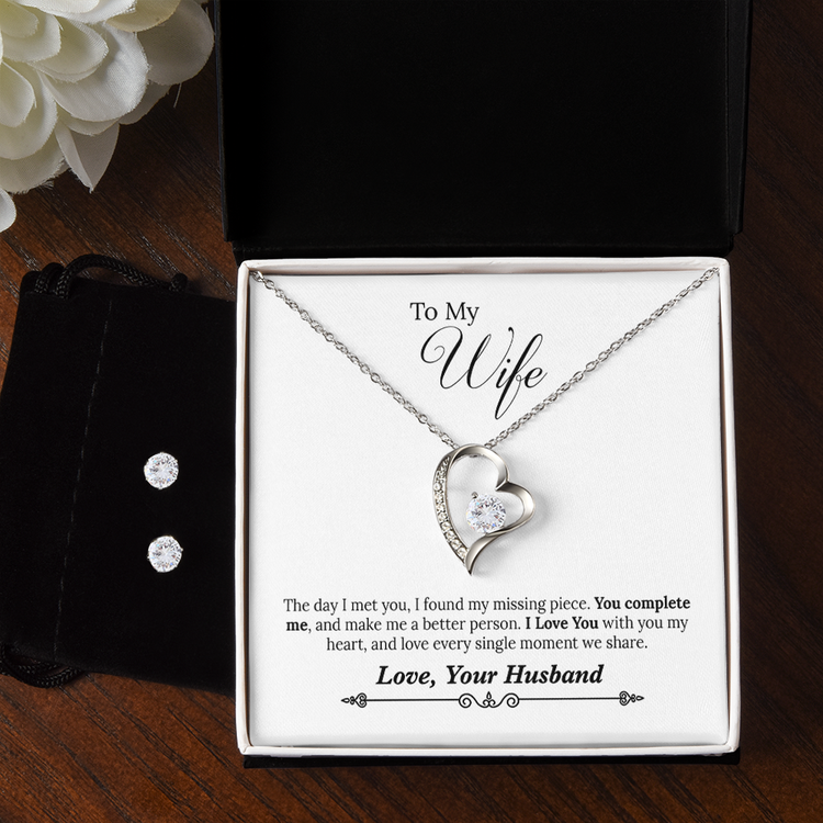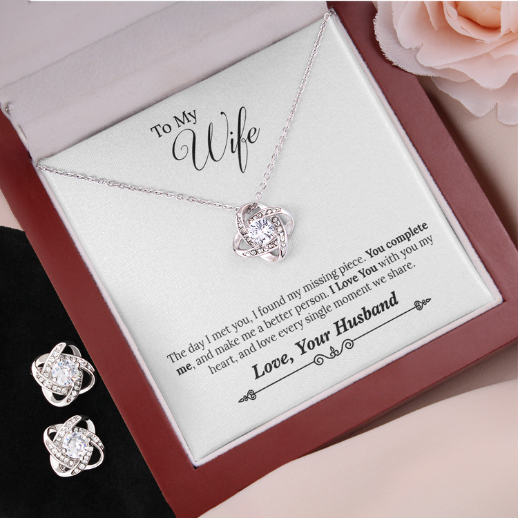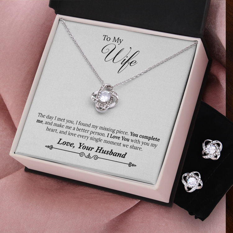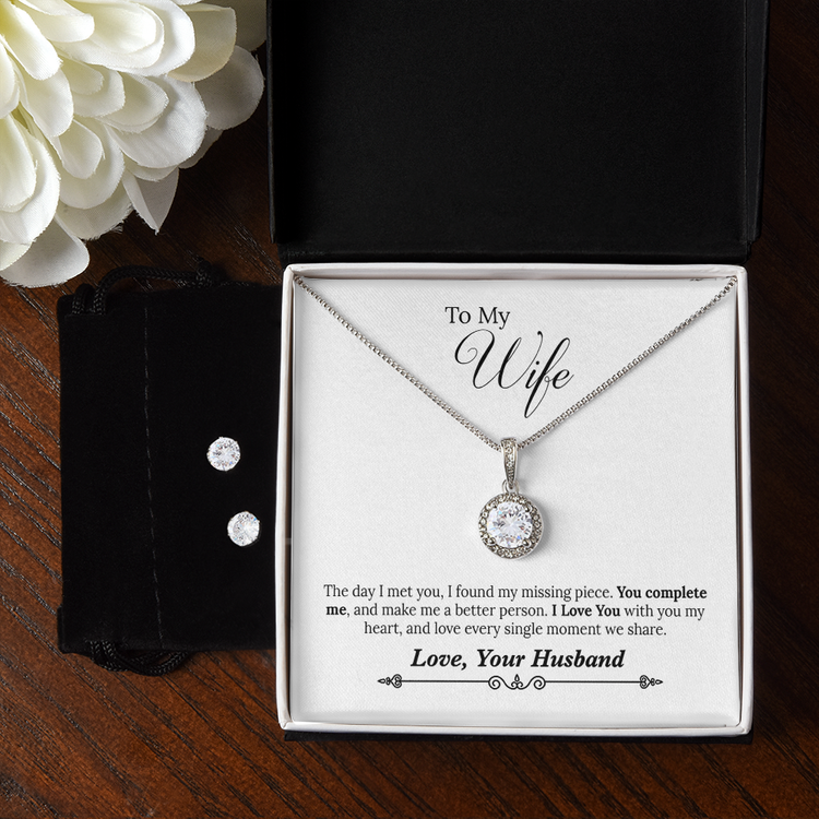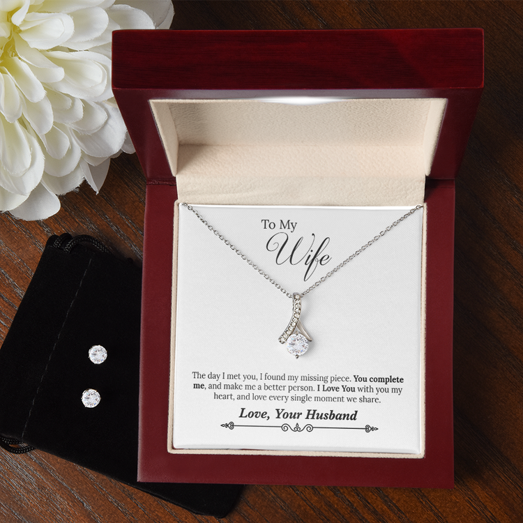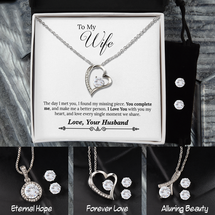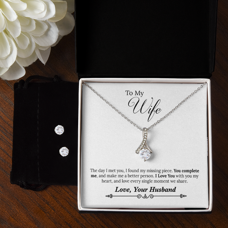 Personalized To My Wife Message Jewelry Set Gift, Custom 14K White Gold Necklace And Earrings Matching Set, Valentine Birthday Gift For Her