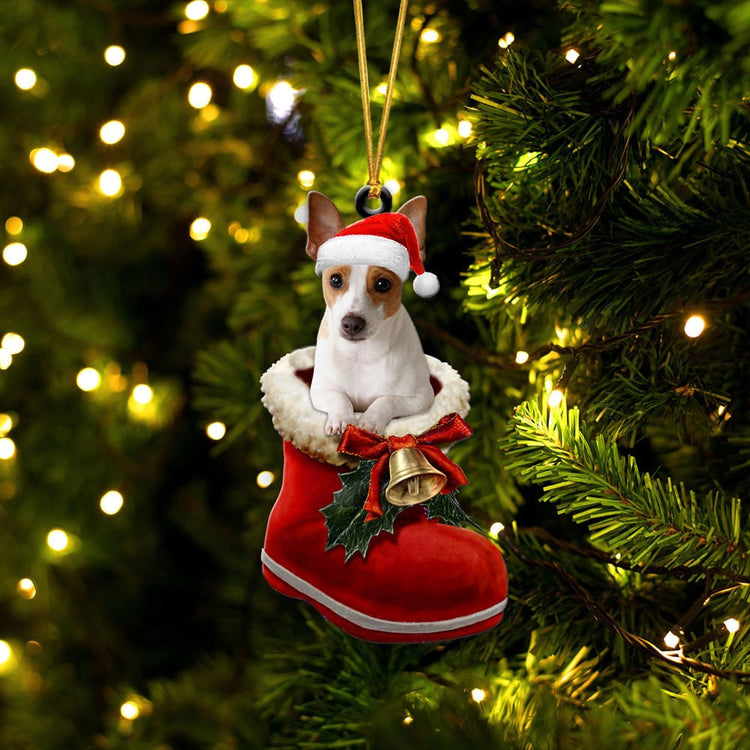 Rat Terrier-In Santa Boot Christmas-Two Sided Ornament