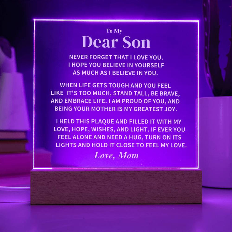 Son Gift from Mom, Acrylic Plaque Gift for Son Believe In Yourself - Square Acrylic Plaque
