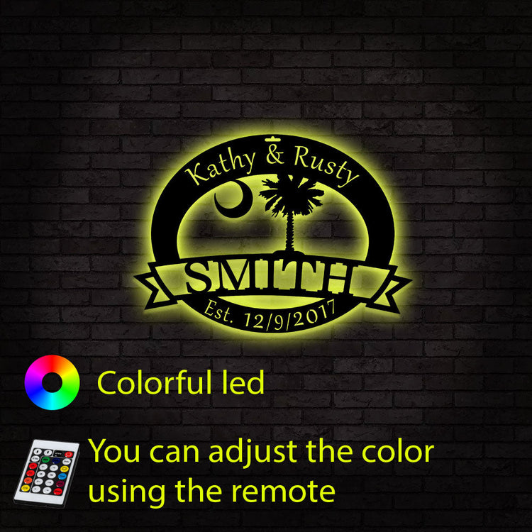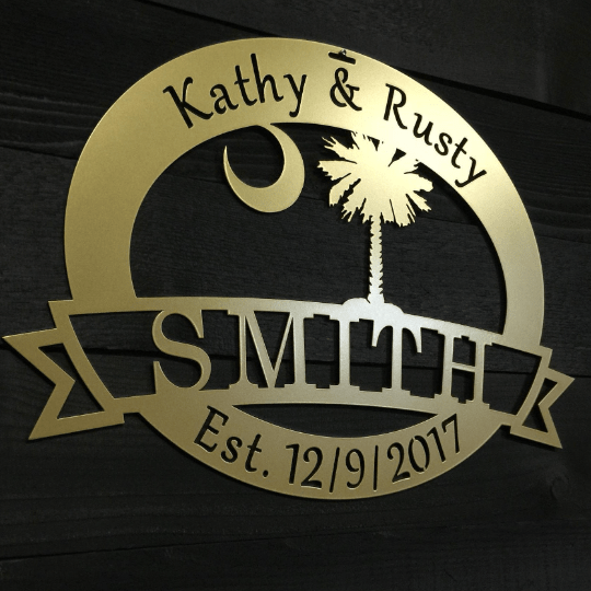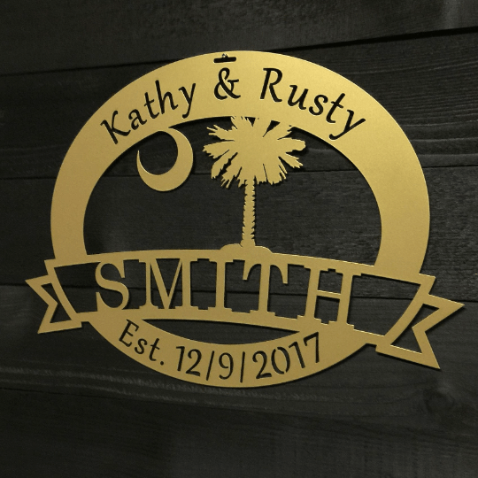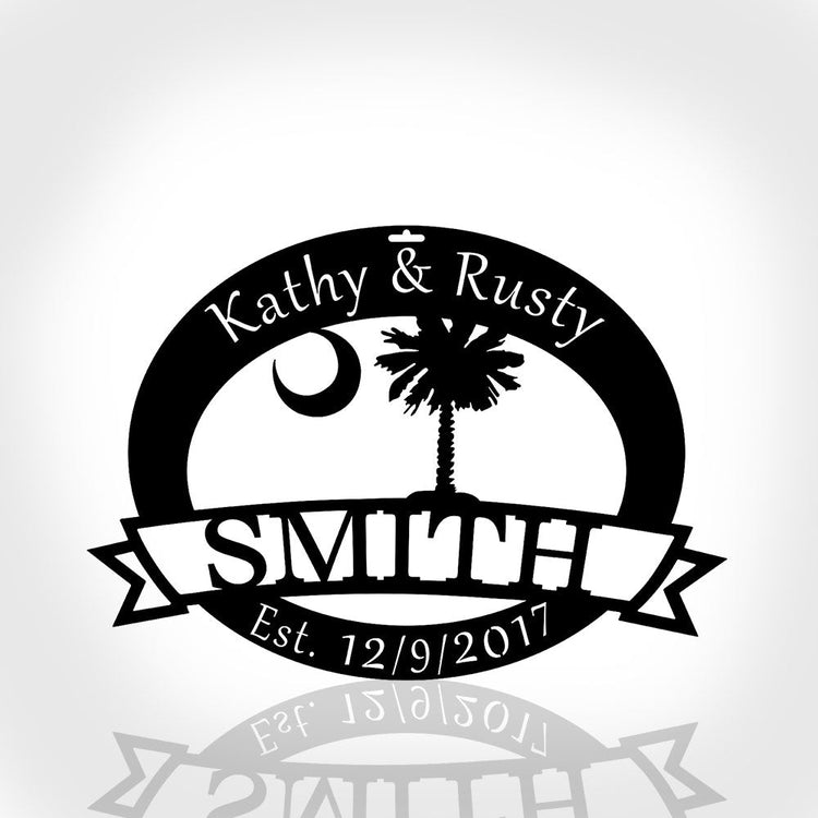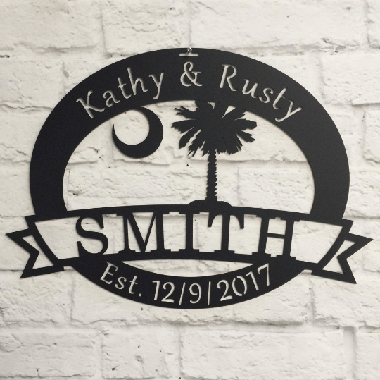 South Carolina State Palmetto Tree & Moon Sign Cut Metal Sign Metal Wall Art Metal House Sign