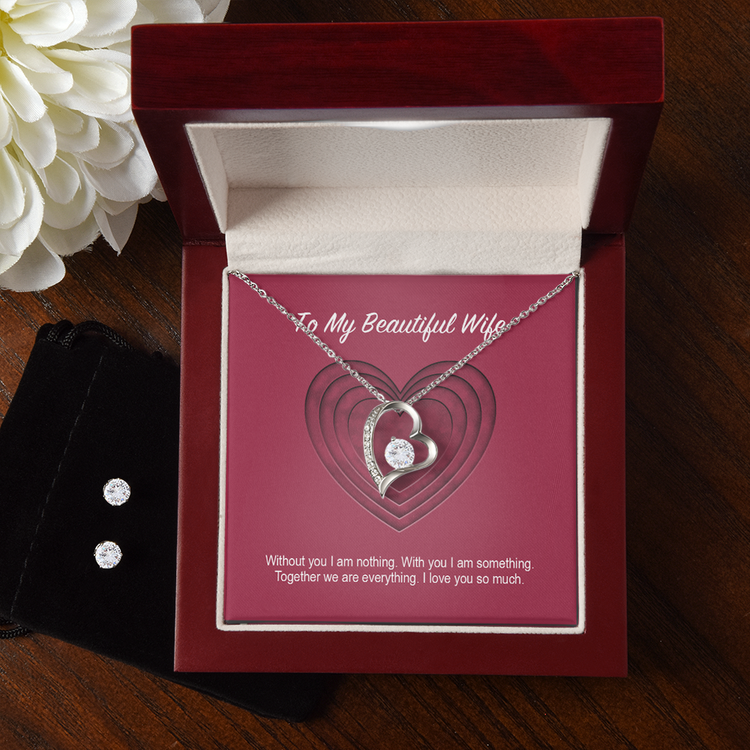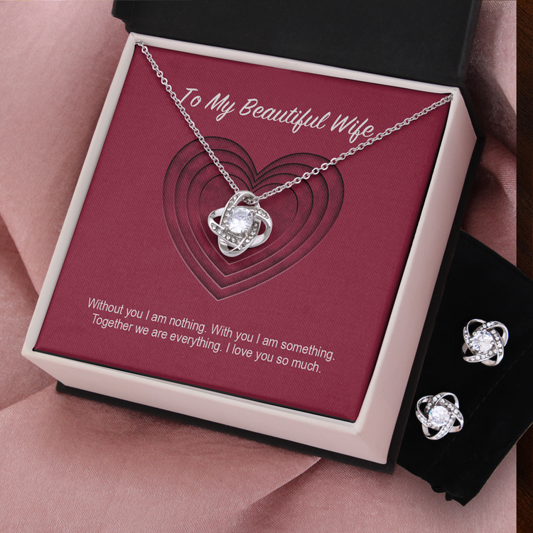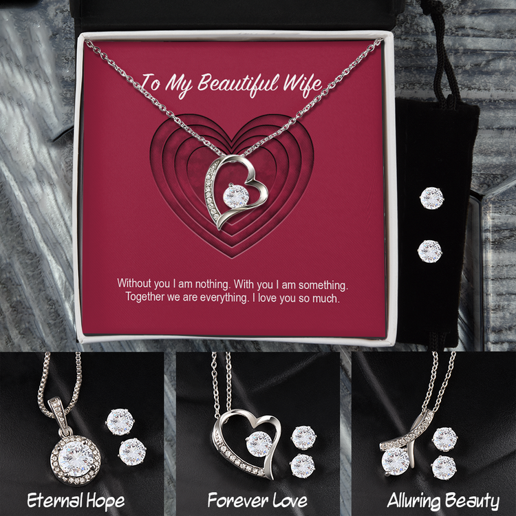 To My Beautiful Wife 14K White Gold Jewelry Set, Without You I Am Nothing, Together We Are Everything, Valentine Gift For Her