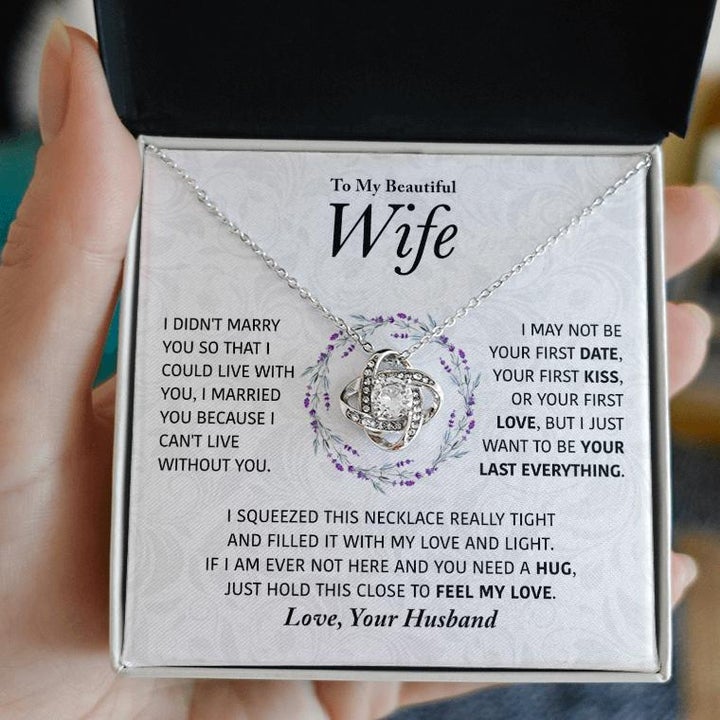 To My Beautiful Wife I Married You Because I Can't Live Without You Love Knot Necklace From Husband Valentine Gift LX015M