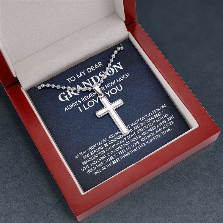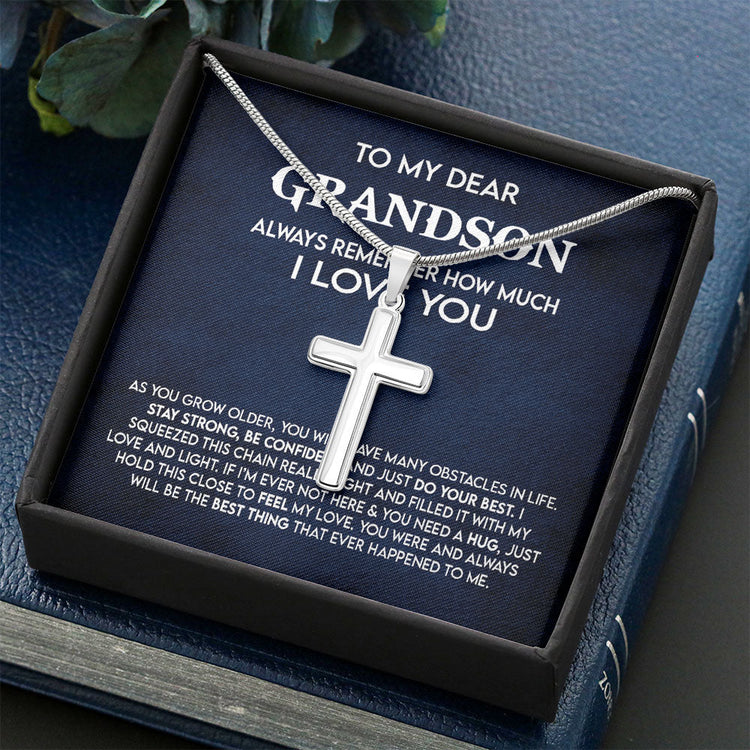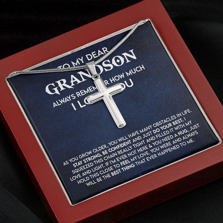 To My Dear Grandson Cross Necklace Gift - Always remember how much I love you- Stay Strong, Be Confident and Just do your best Cross Necklace LX349D