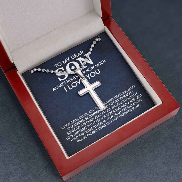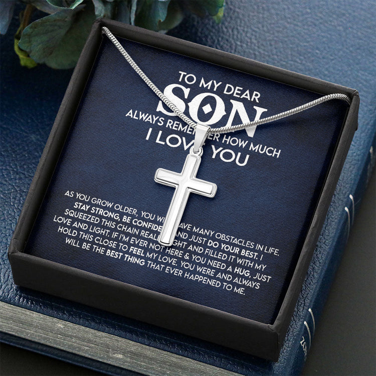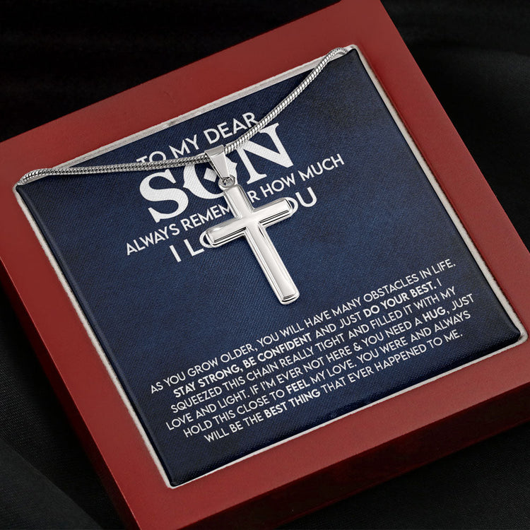 To My Dear Son Necklace Gift - Stay Strong, Be Confident and Just Do Your Best - Cross Necklace LX053C