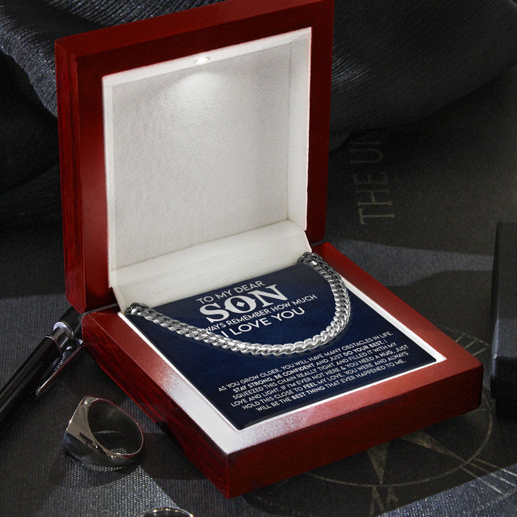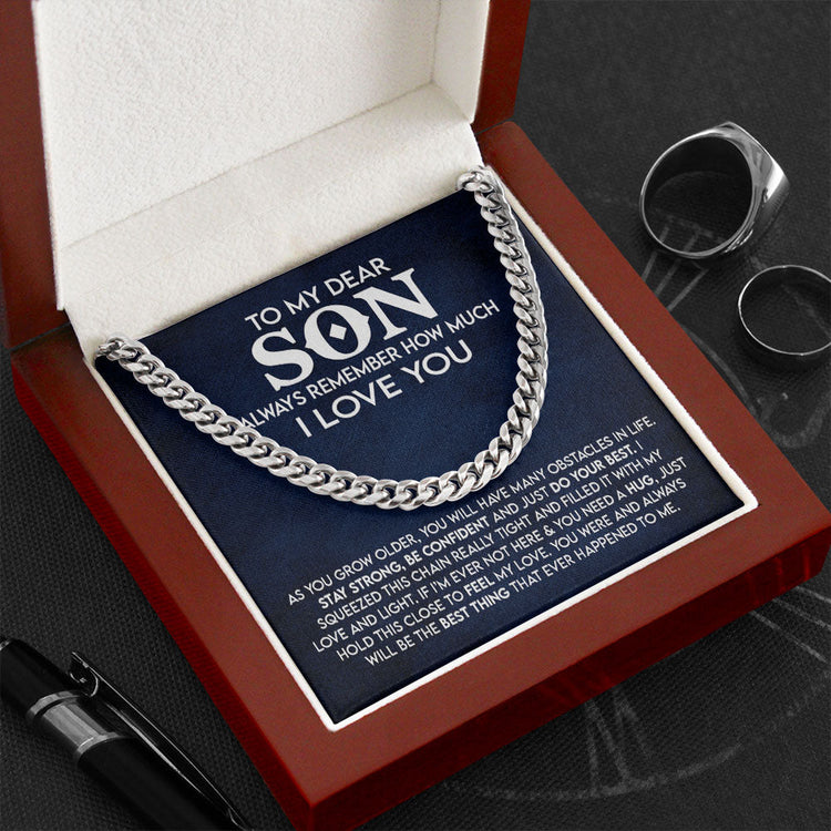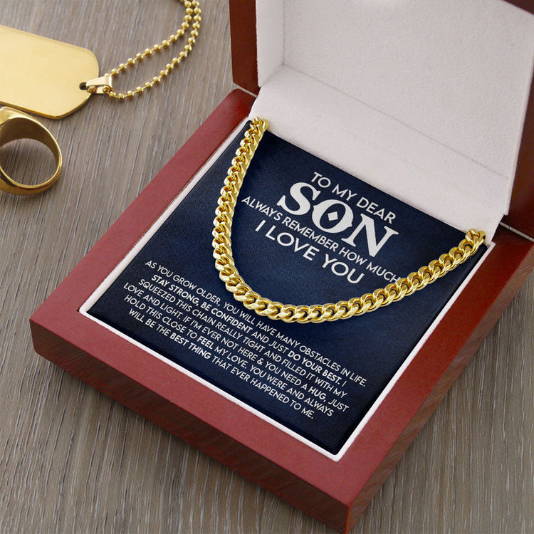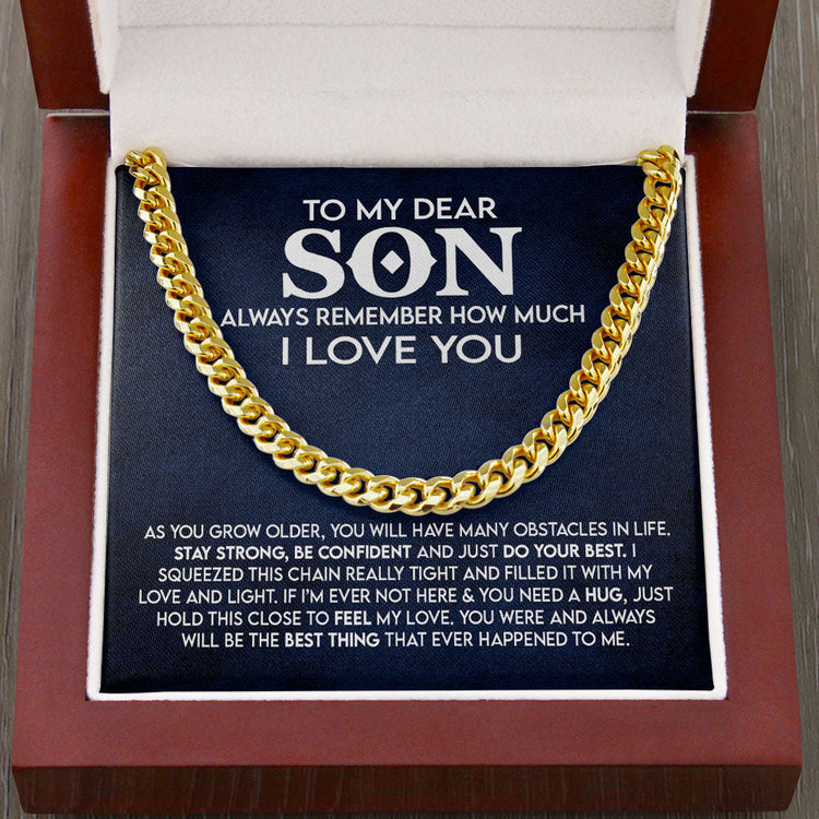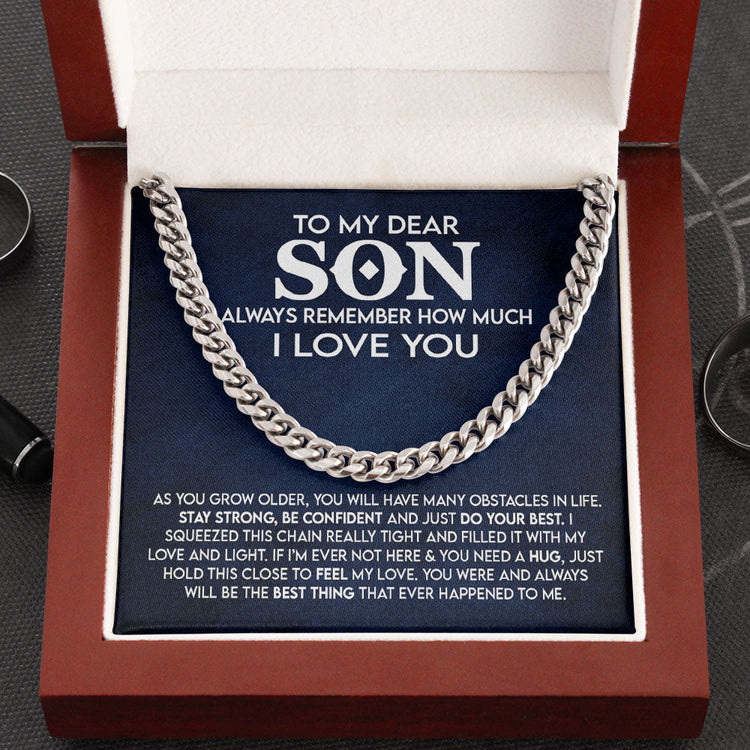 To My Dear Son Necklace Gift - Stay Strong, Be Confident and Just Do Your Best Cuban Link Chain Necklace LX053C