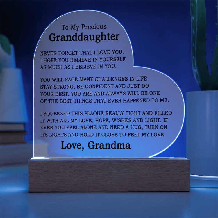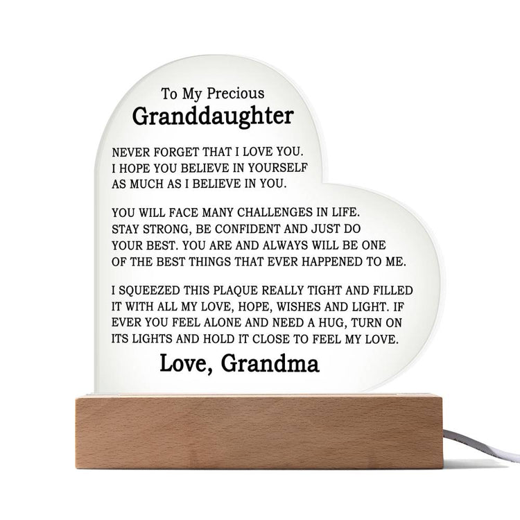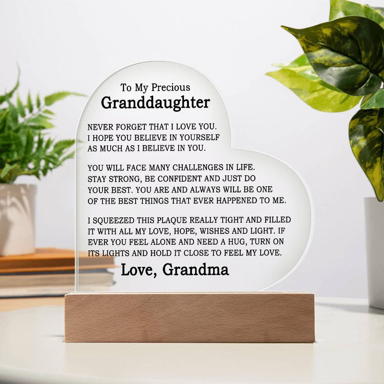 To My Granddaughter Gift from Grandma - Engraved Acrylic Heart Plaque