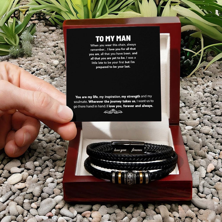 Are you looking for a gift as special as the man in your life? Then this Men's "Love You Forever" Bracelet is perfect! Engraved with a heartfelt message, this gift is great for birthdays, anniversaries, or just a thoughtful way to say "I love you". It's not just an accessory; it's a daily reminder of your love and appreciation. Whether it's your son, husband, or any deserving guy, this bracelet will have them grinning from ear to ear while rocking some serious style.