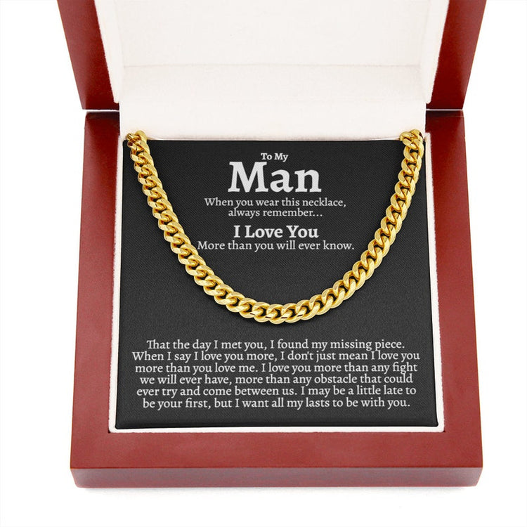 To My Man Cuban Chain Necklace for Him, Romantic Birthday Gifts for Him Christmas, Best Jewelry for Men, Jewelry for Him Romantic
