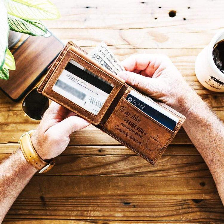 To My Man Leather Wallet Like Coffe, Birthday Gift, Father's Day Gift