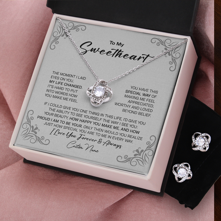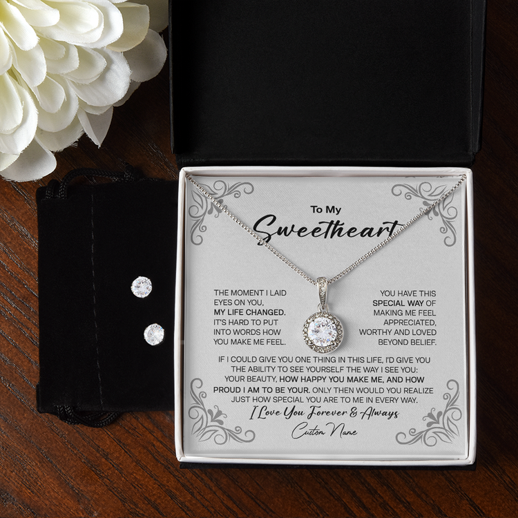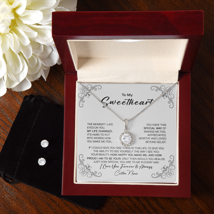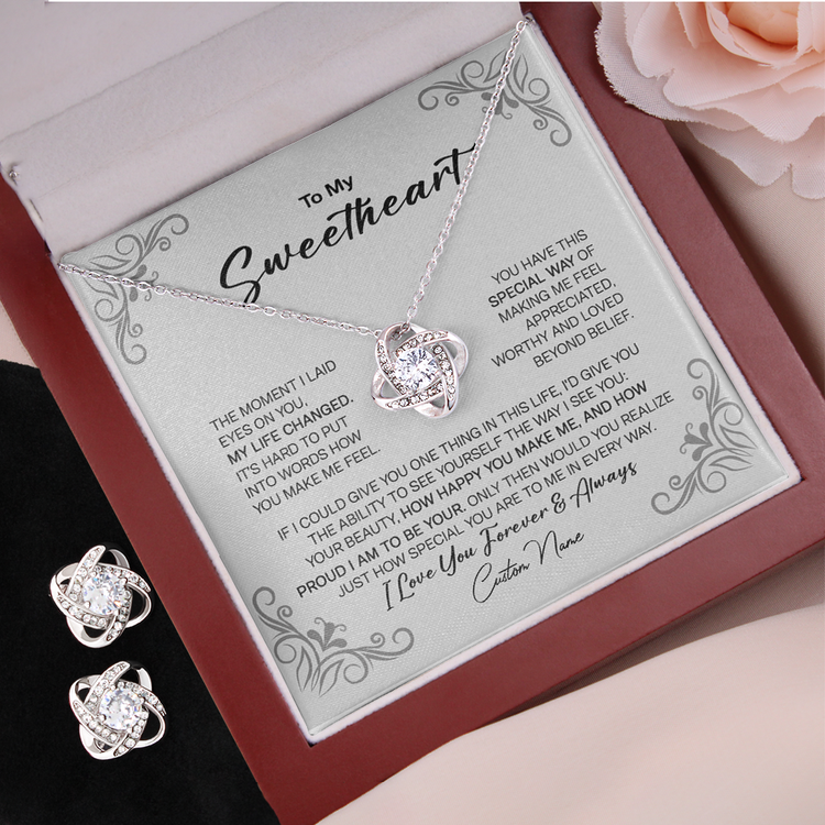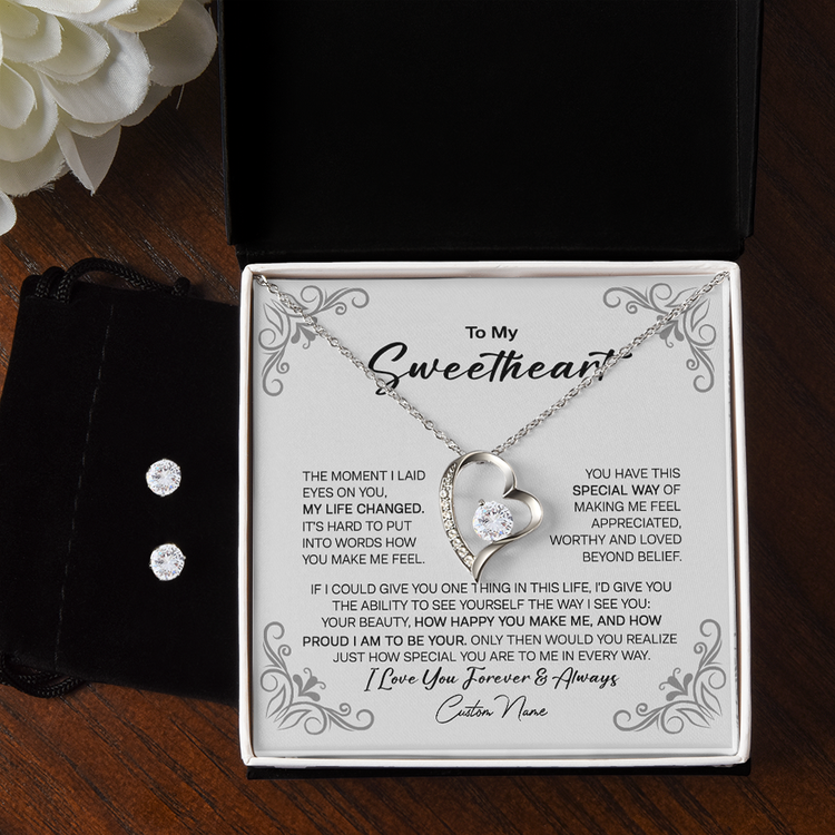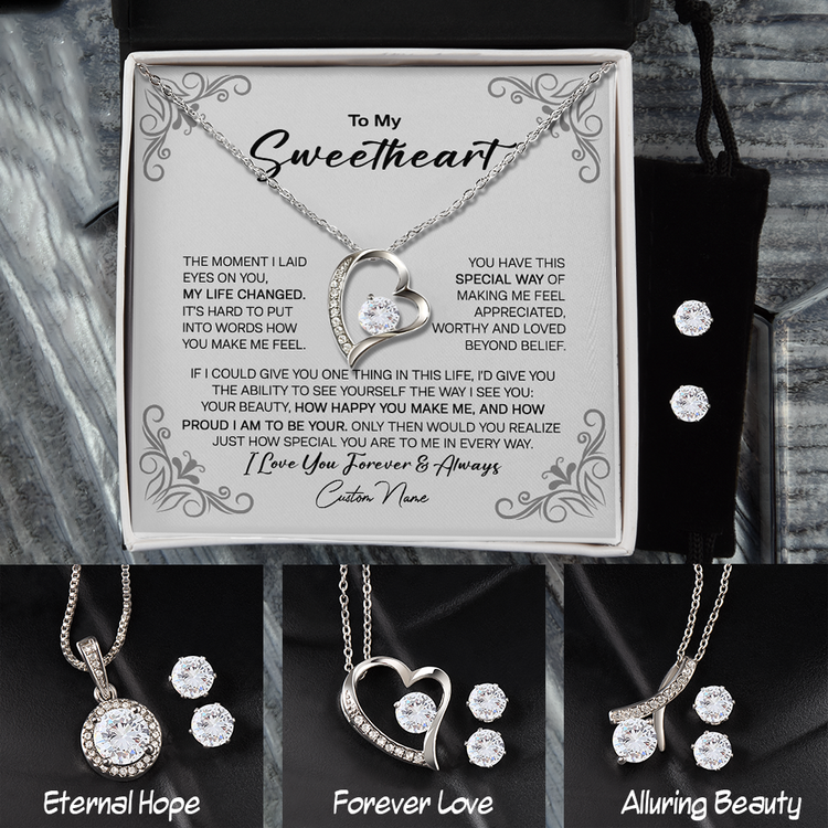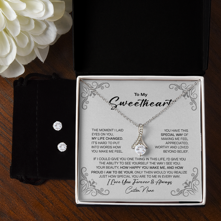 To My Sweetheart 14K White Gold Jewelry Set, Meaningful Message Gift Idea For Valentine, Gift For Wife From Husband