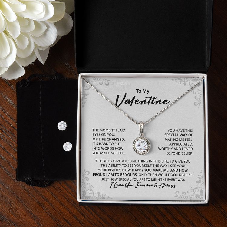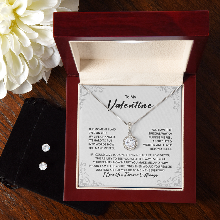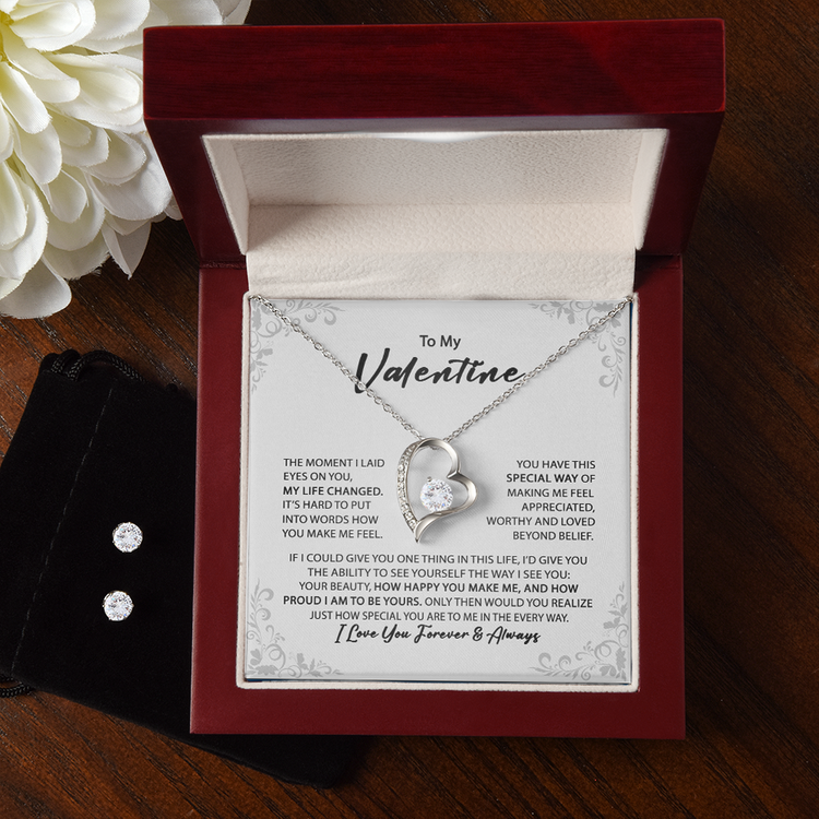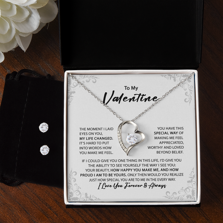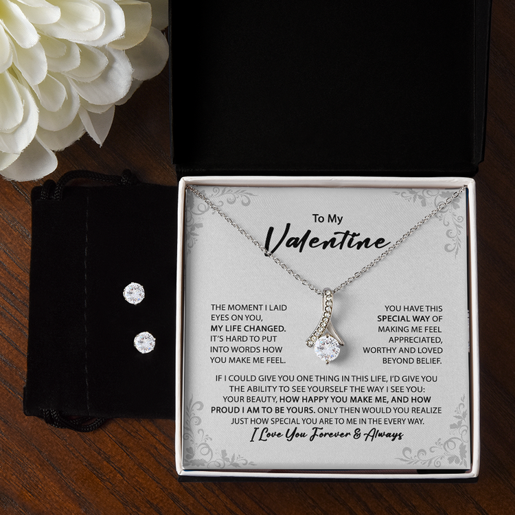 To My Valentine Jewelry Set, Valentine Necklace Gift For Her Valentine 14K White Gold Jewelry Set Gift, Meaningful Words Send To Wife Soulmate