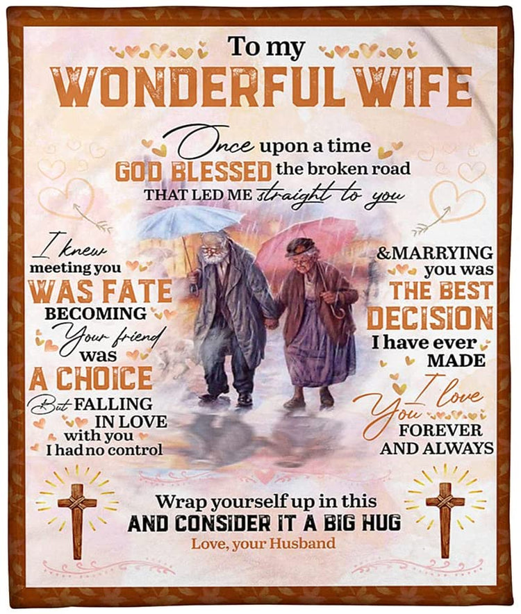 To My Wonderful Wife From Husband Old Couple Personalized Fleece Blanket