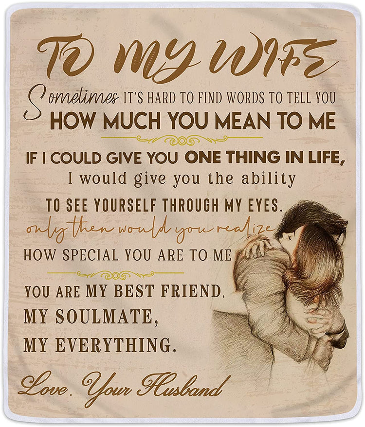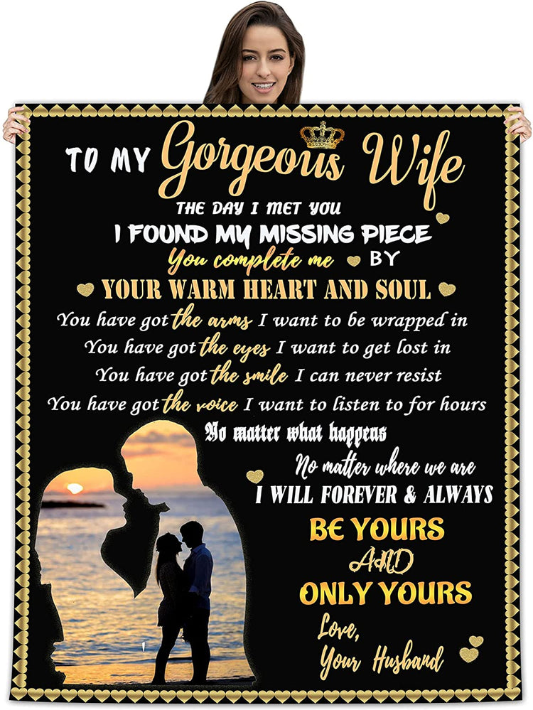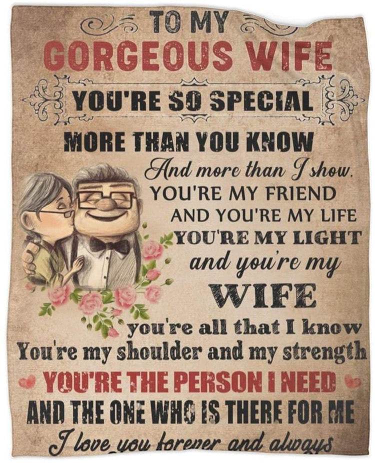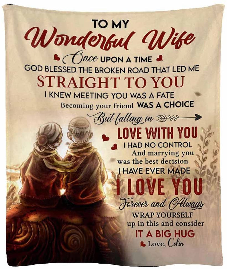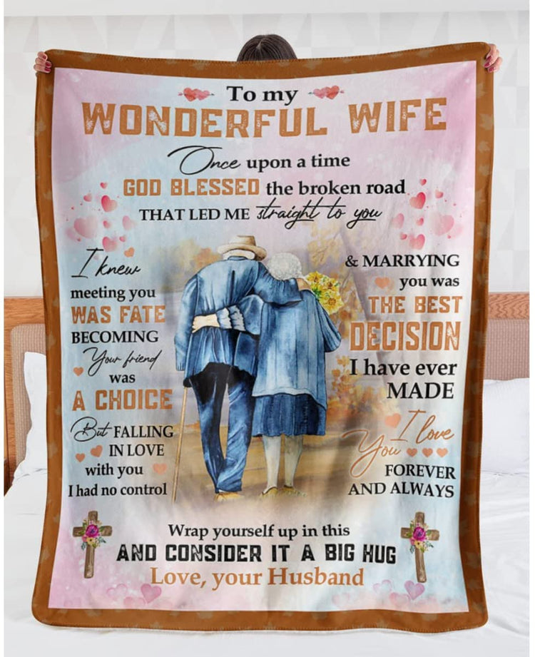 To My Wonderful Wife From Husband Old Couple Personalized Fleece Blanket - Romantic Gifts for Wife Anniversary - Wife Birthday Gifts for Her from Husband for Valentines, Mothers Day or Christmas