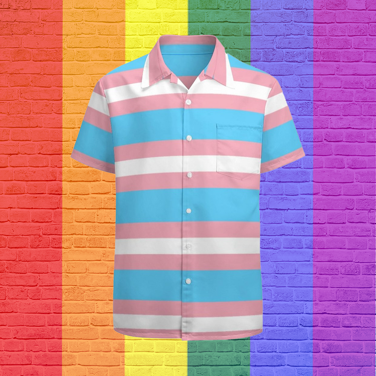 Transgender Pride Flag Lgbt Rainbow Hawaiian Vintage Shirt Mens Button Down Plus Size Tropical Hawaii Beach Shirts