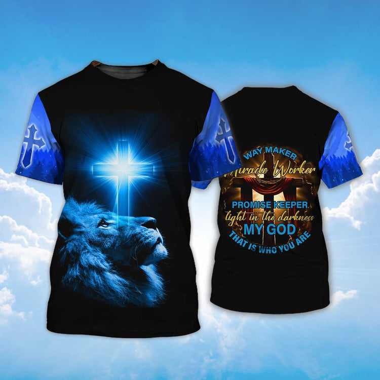 Way Maker Miracle Worker Lion And Light Cross T Shirt spod