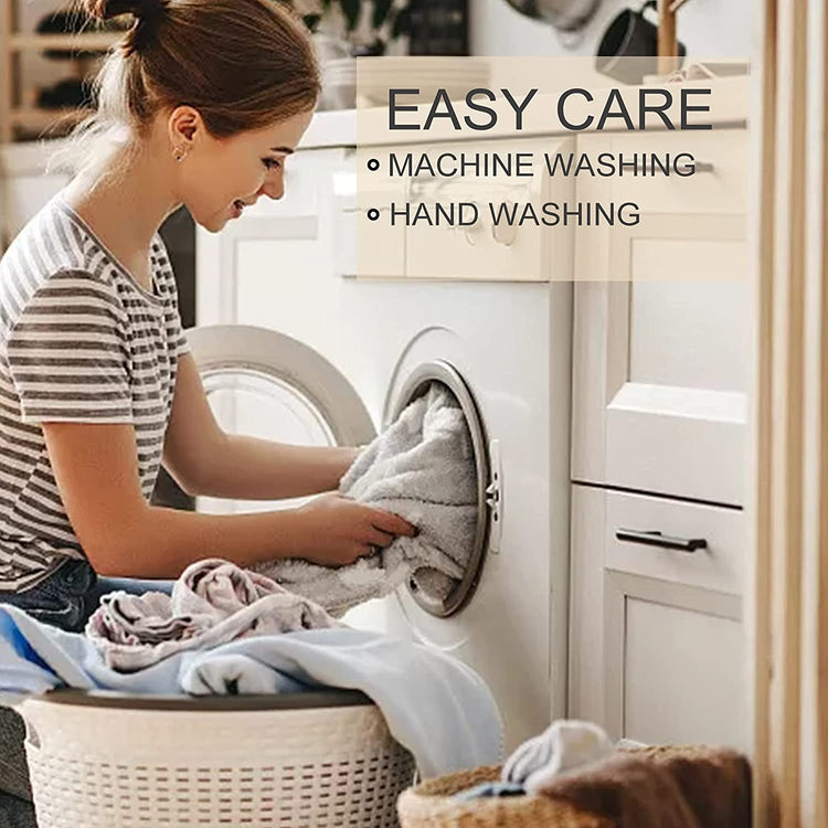 Machine washable with cold water gentle cycle and mild detergent.