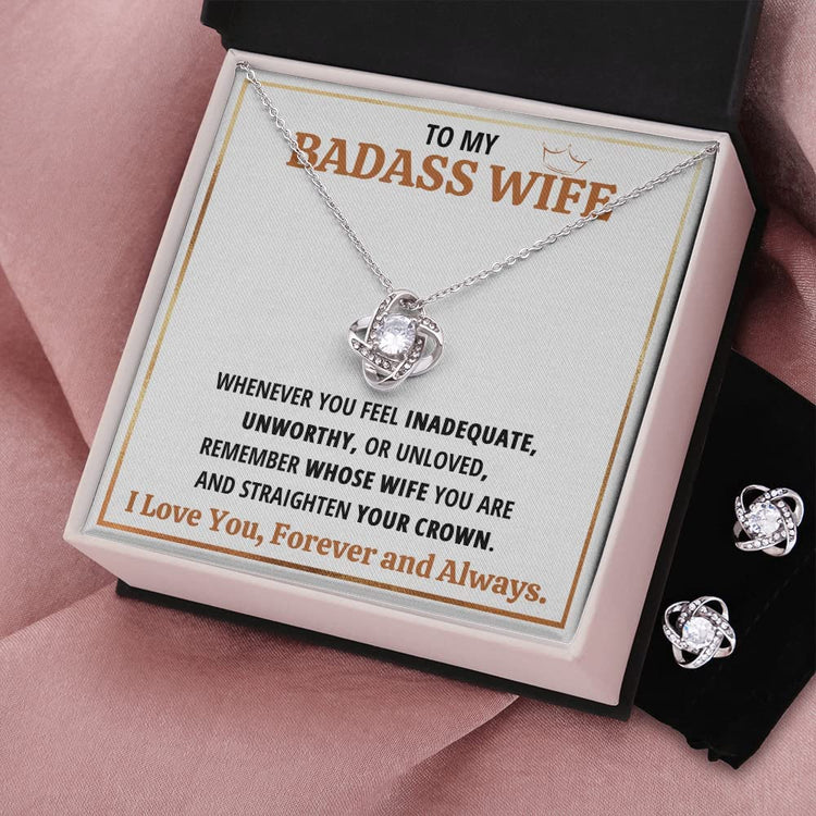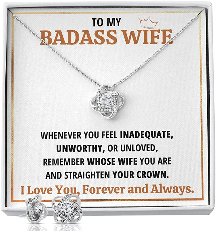 Wife Necklace - To My Badass Wife Crown I Love You Forever And Always Necklace, Gift for Wife from Husband, Love Knot Necklace XL051G